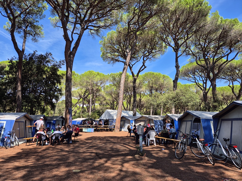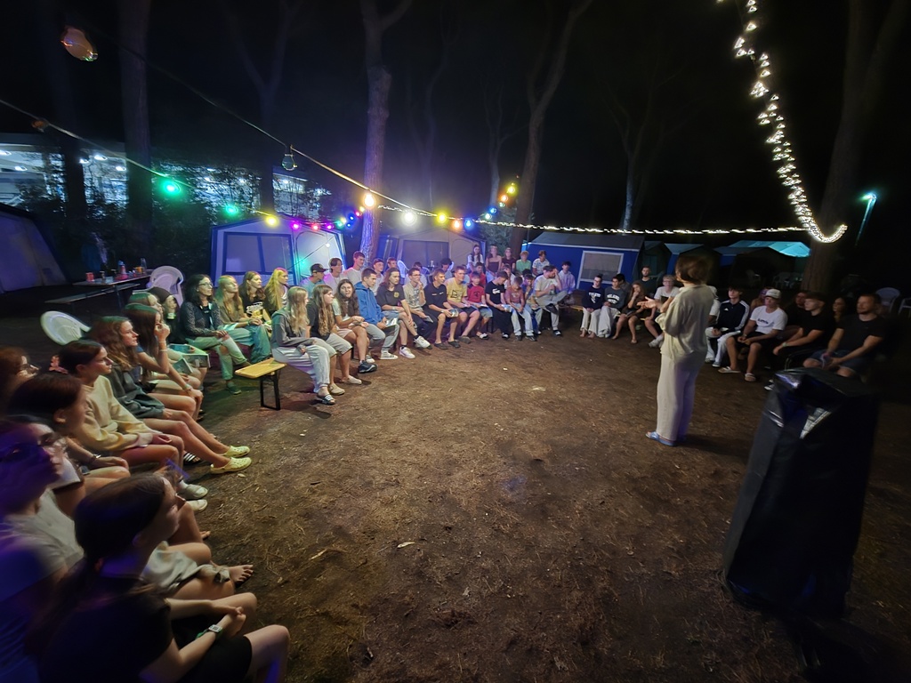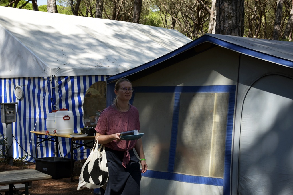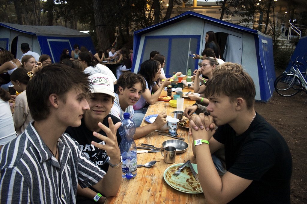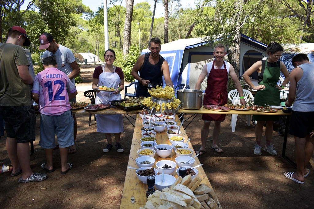 Nach einem deftigen Abendessen und einer Dusche später, um nach all dem Sport und Meersalz wieder frisch zu werden, starteten wir mit dem Abendprogramm. Heute gaben wir beim Singen so richtig Gas und bestimmt konnten da einige Jungscharklassiker über einen großen Teil des Campingplatzes gehört werden! Ebenso lockerten wir die Stimmung noch mit einem kleinen Spiel auf.