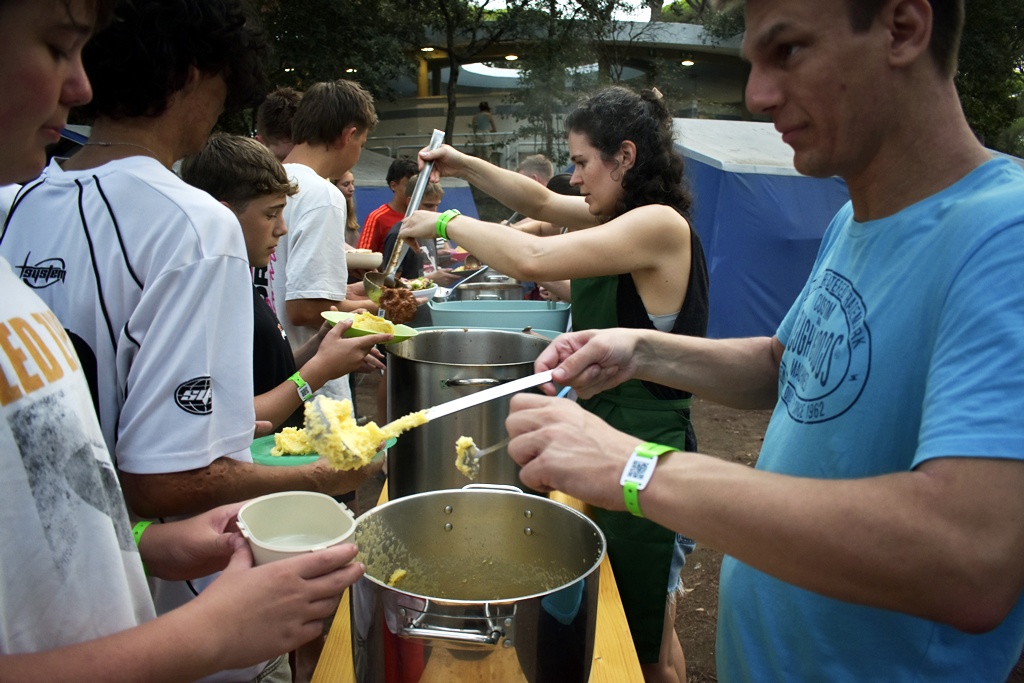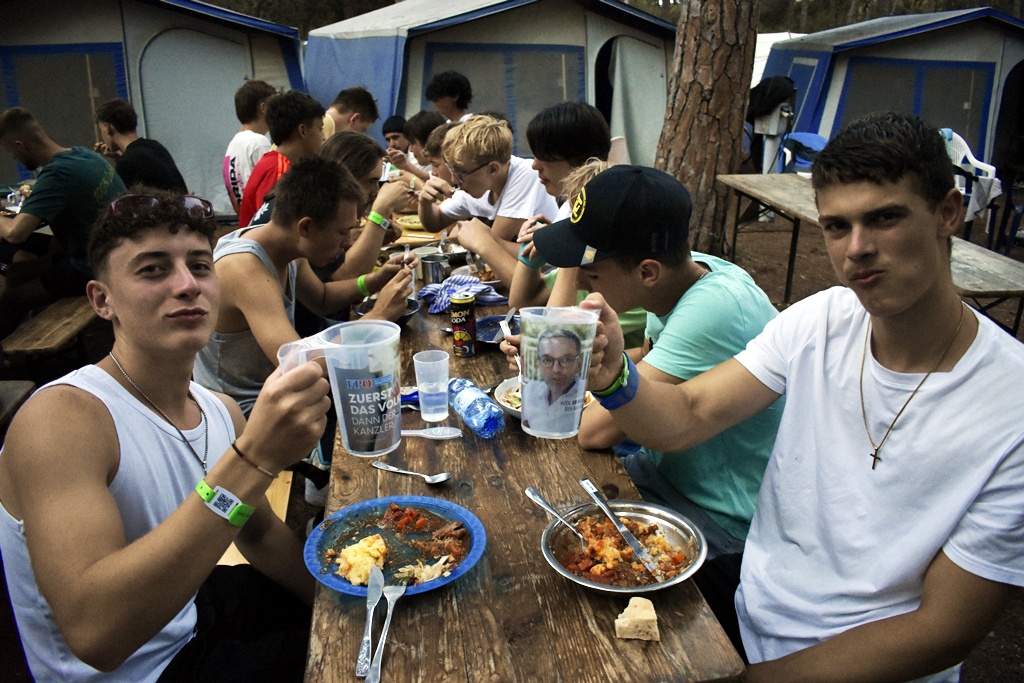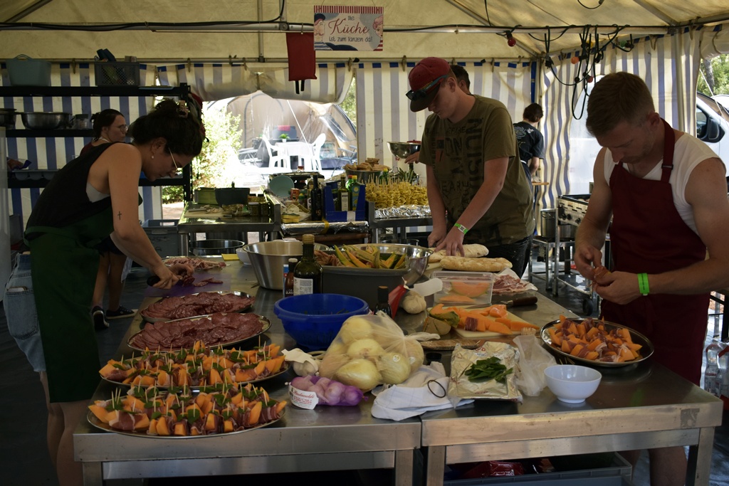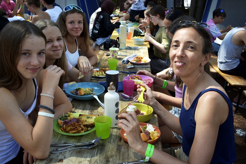 Nachdem die Kleingruppen – gleich wie auch gestern – bei vielen Gruppen sehr ermutigend waren, fanden wir uns anschließend zu einem wunderbar angerichteten Mittagsbuffet zusammen. Dadurch gestärkt ging es dann ans Eingemachte: Die Sportwettkämpfe!
